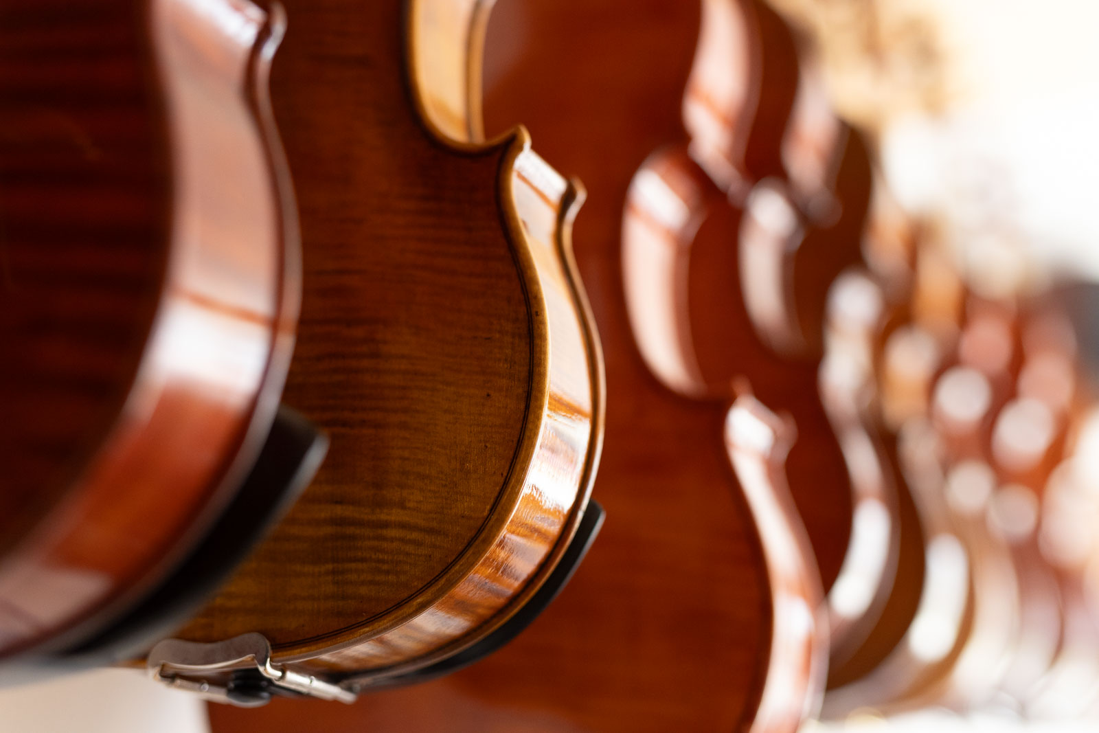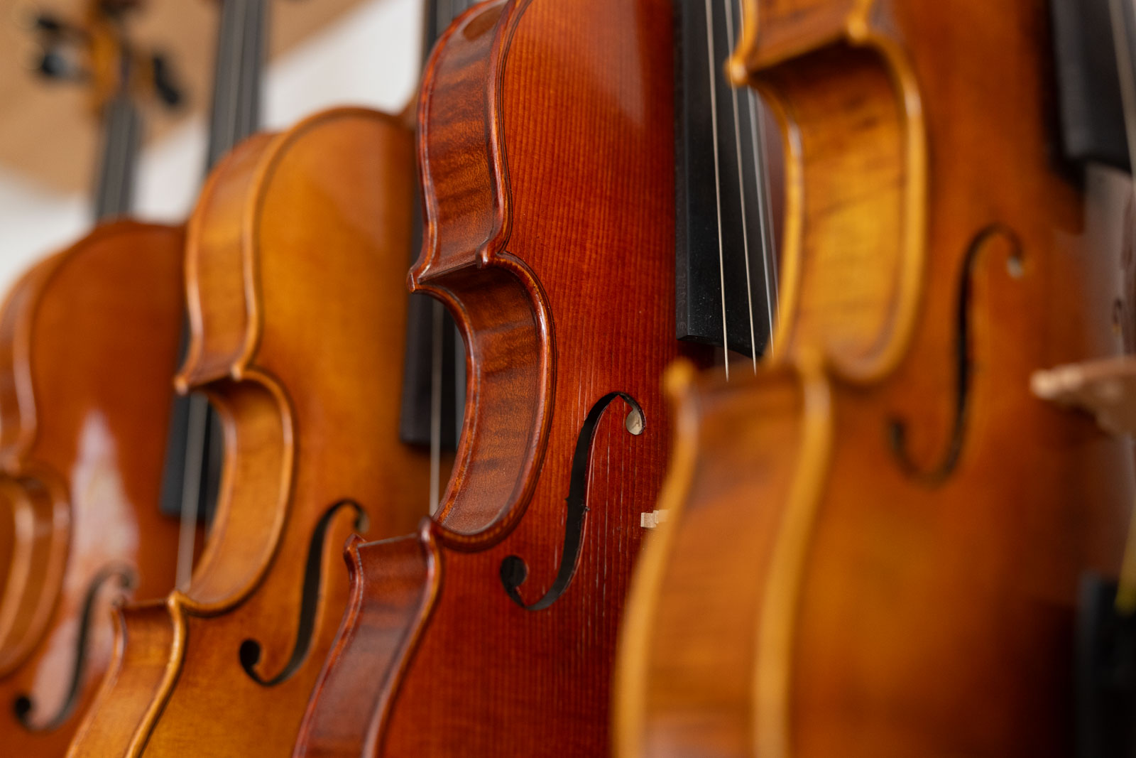 Verkauf von ausgesuchten Geigen, Bratschen, Celli und Bögen.